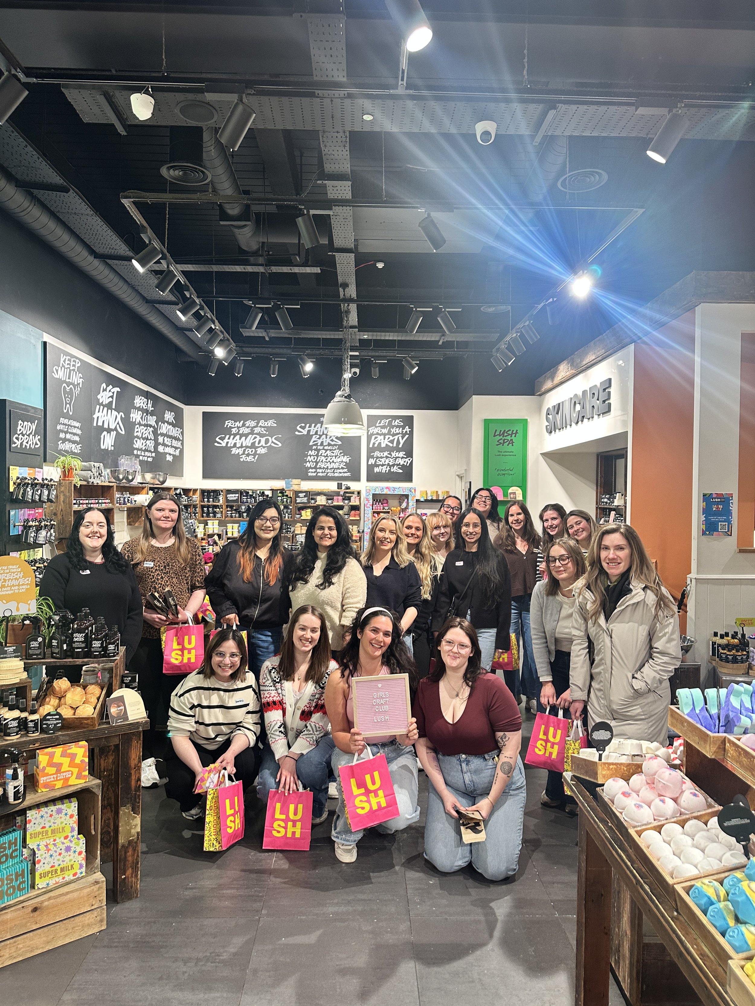 Guests created their own handmade bath bombs, learned relaxing arm massage techniques using Lush’s massage bars, and enjoyed refreshments in a warm, welcoming space.